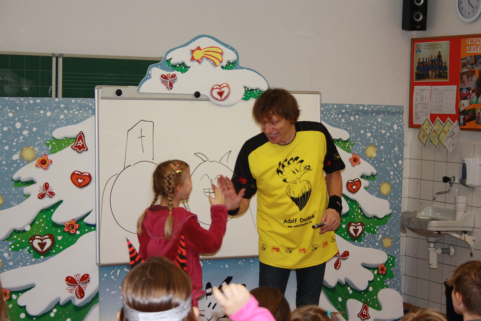 Jezdí k nám pravidelě a vždy přiveze spoustu legrace a humoru. Letos navštívil premiérově taky ZŠ Banka u Opavy.