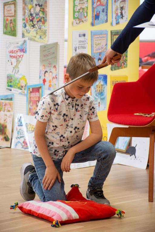 Pasování prvňáčků na čtenáře patří v naší knihovně k akcím s dlouholetou tradicí. Letošní rok bylo ale úplně jiné než léta předešlá... Poté, co se prvňáčci seznámili s knihovnou, přesunuli se do sálu, kde na děti se svým programem čekala oblíbená spisovatelka dětských knížek Zuzana Pospíšilová. Ta dětem ze svých knížek předčítala, zadávala jim také jazykové hádanky a rébusy. Následně byly jedno po druhém slavnostně pasovány mečem do řádu čtenářského.